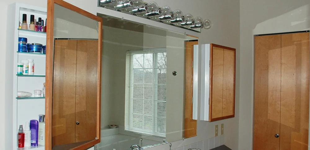 Medicine cabinets don’t need to be boring! Our lovely hand-made alternative features a hardwood frame, polished-edge glass shelves and classic white melamine backing for a simple finish that is easy to keep clean. We designed the door frames with splined joints to prevent separation and keep your cabinets looking great for years to come. Please contact us to place an order or to request a quote.